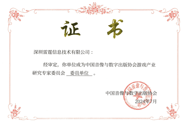 2024年7月25日,,中国音像与数字出版协会游戏产业研究专家委员会(以下简称“中国音数协游戏专委会”)成立大会在上海市召开,,厦门yaxin111网络技术股份有限公司及其子公司深圳雷霆信息技术有限公司(以下统称“公司”)正式成为中国音数协游戏专委会委员单位。。。
