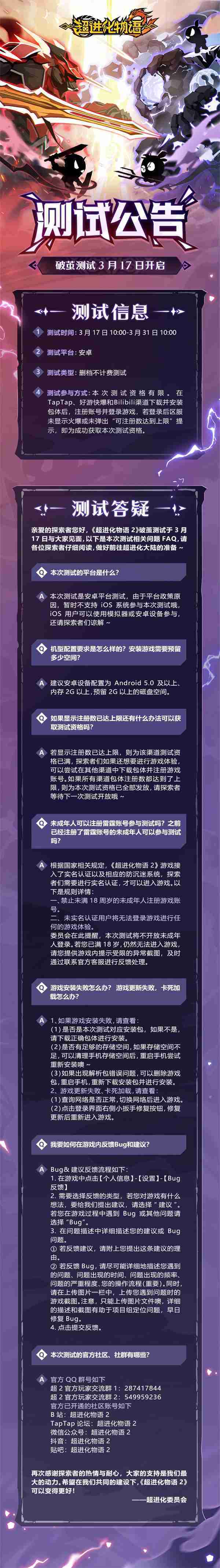 《超进化物语2》首次限号不计费删档测试——「破茧测试」将于3月17日开启,,随我们确认测试细节,,,明天迈出踏上超进化大陆的第一步吧!!!!